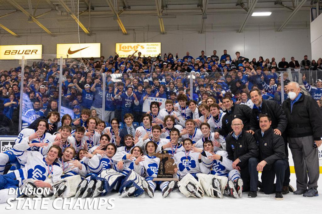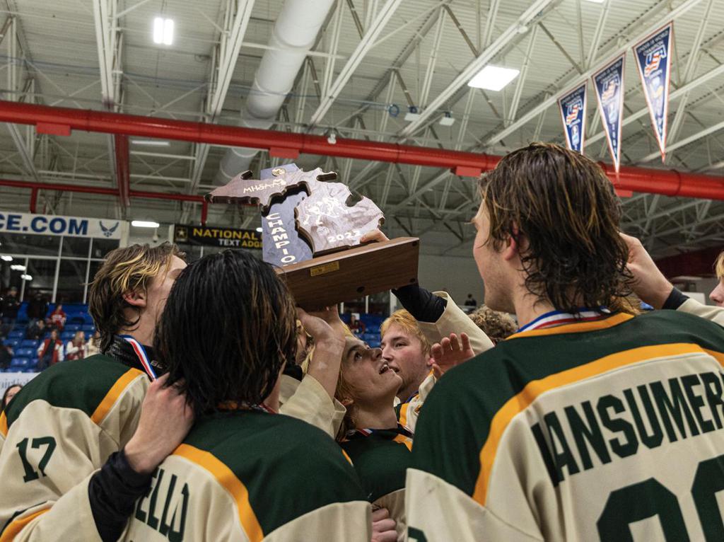 Hartland captured its third state title since 2018, thanks to a 3-2 overtime victory over Trenton in the first of three championship games at USA Hockey Arena on Saturday.